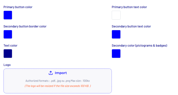 You can also customize the interface of your process by uploading your logo and modifying the color scheme of texts and buttons to align with your brand identity.