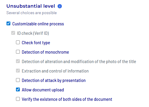 If your process includes either PVID (Dynamic Identity Verification Process) or the Custom Online Process by Docaposte, the following checks are available: