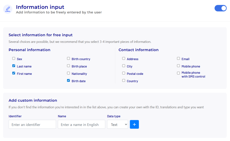 If your process includes FranceConnect+ and/or La Poste Digital Identity, make sure to check the option “Extract digital identity” so that we can populate the Identity block with the retrieved data.
