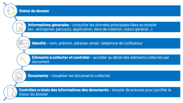 Cette section vous permet de visualiser ce qui a été extrait des pièces déposées, ainsi que les contrôles qui y ont été effectués.