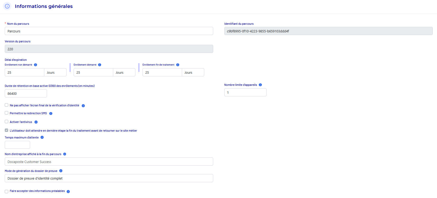 Dans le cas où vous proposez France Connect, France Connect+ et/ou l’Identité Numérique La Poste dans votre parcours, n’oubliez pas de cocher « Extraire l’Identité numérique » afin que nous puissions valoriser le bloc Identity avec ces informations.
